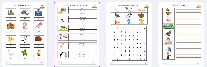“k” sesi il ilgili hazırlanmış 4 farklı etkinlik tek dosya olarak yüklenmiştir. İyi eğlenceli öğrenmeler.