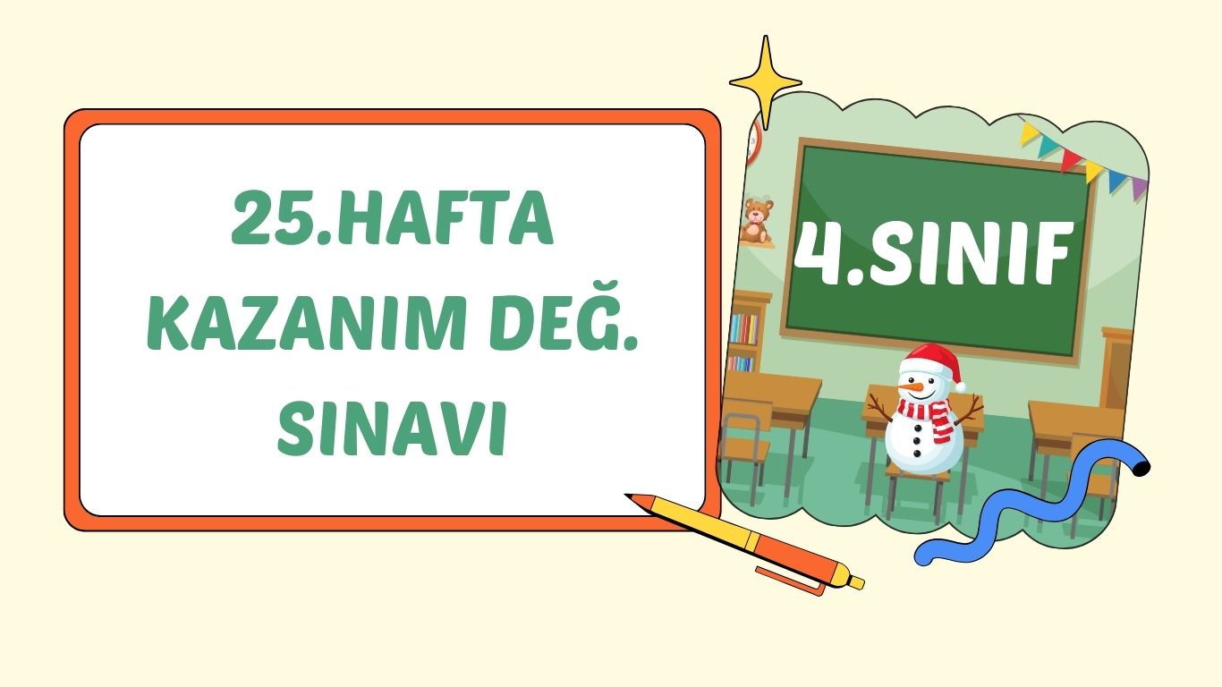 25. hafta kazanımlarından derlediğimiz 20 soruluk, çevrimiçi çoktan seçmeli, 70 ve üzeri puan aldığınızda mail adresinize başarı belgesinin gönderileceği bir testtir.